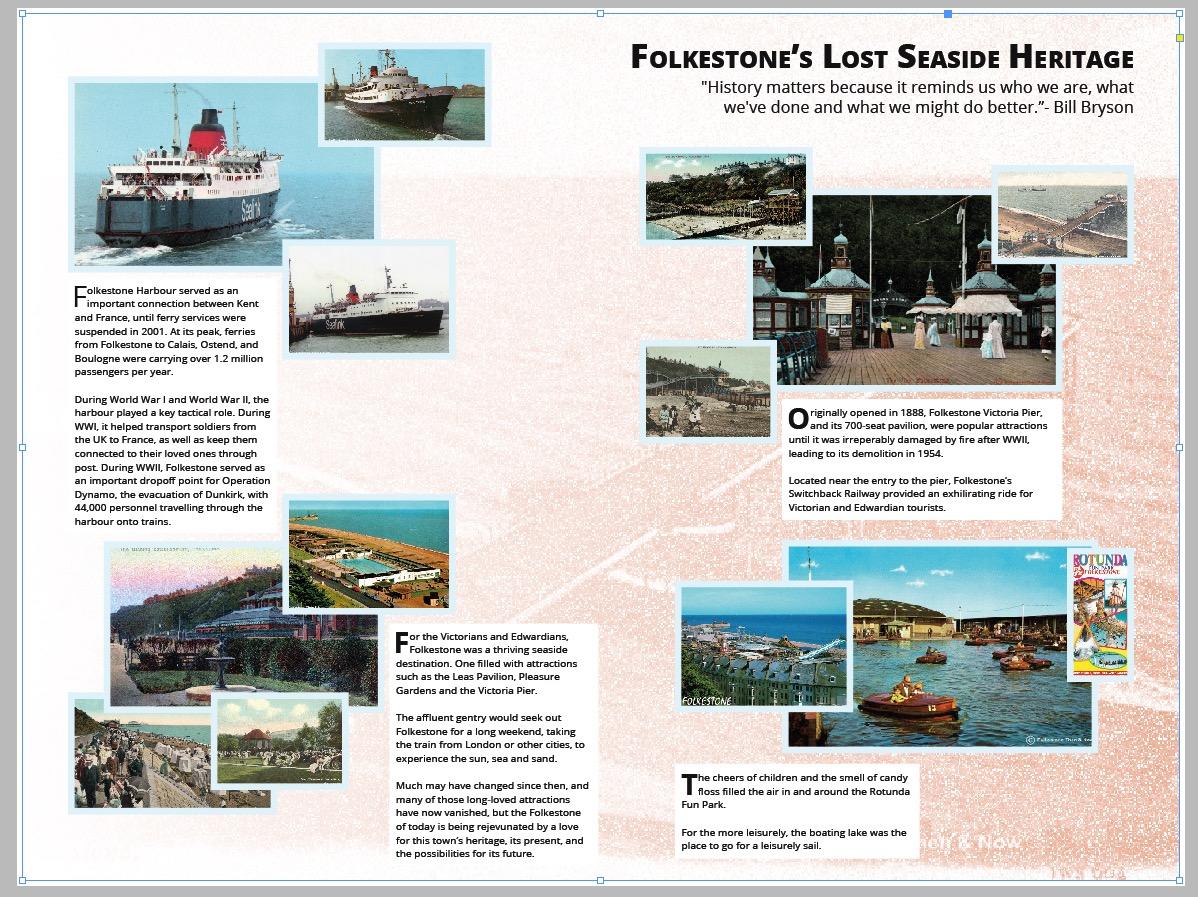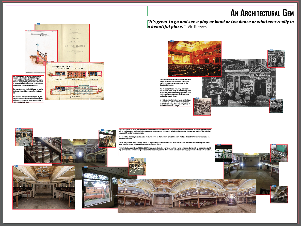 Here you can see the evolution of two pieces for the Leas Pavilion Archive Exhibit. This exhibit, happening this week at 69 Sandgate Road, Folkestone, has been curated and designed by yours truly on behalf of the Friends of the Leas Pavilion and the Leas Pavilion Archive.