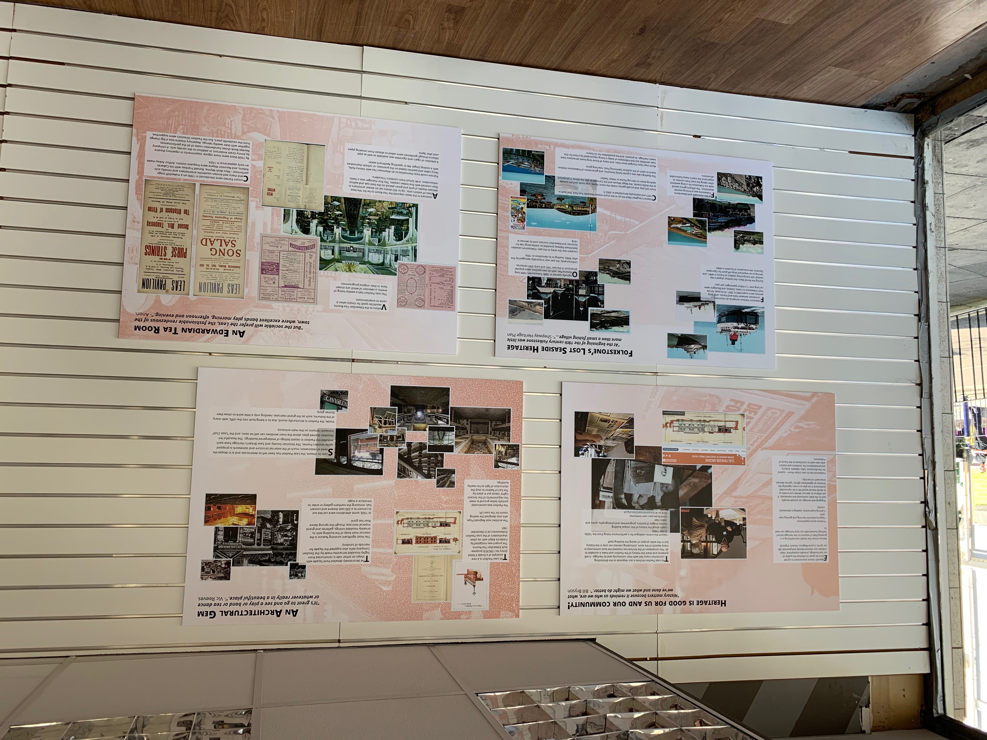 How do you create an exhibition that celebrates over 100 years of a building’s history, whilst also looking to the future? All whilst not being able to access or bring people into the building, because of a state of disrepair. That’s the challenge I faced when curating and designing the opening exhibition for The Leas Pavilion Archive.